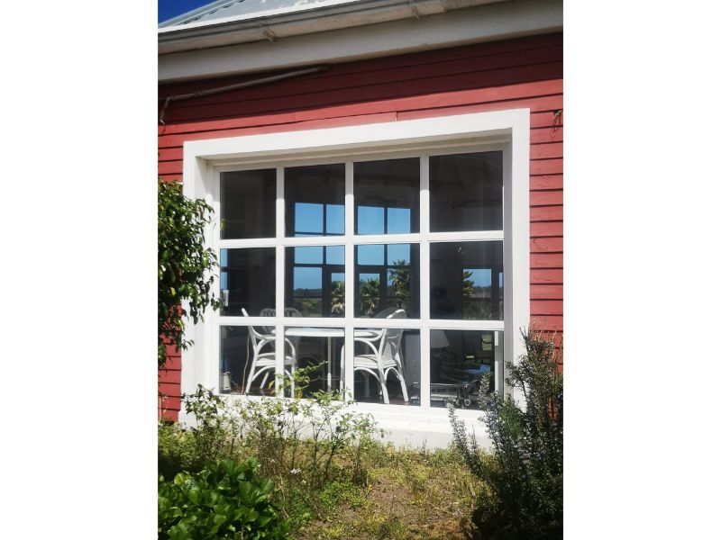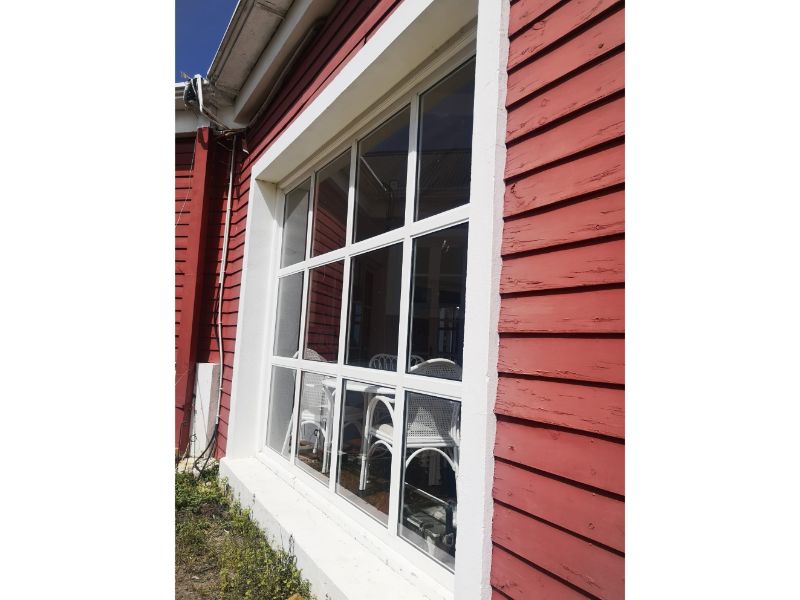 Compuesto por clásicas aberturas de madera, hicimos el recambio de las mismas por aberturas en aluminio color blanco, con vidrios repartidos de manera tal que se mantenga el diseño clásico y colonial del lugar.