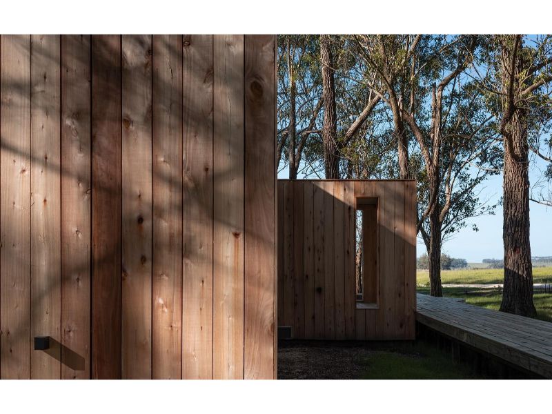 Las aberturas están diseñadas para lograr un contacto pleno con el exterior, de manera tal que los clientes vivan el bosque que los rodea como parte de su vida diaria.